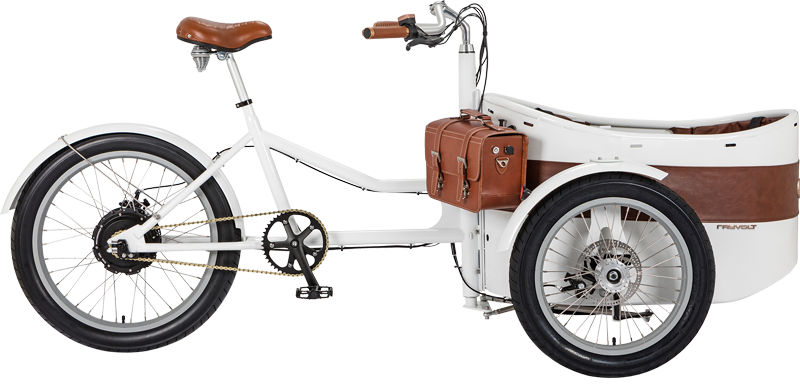 Trixie是款帶有時尚復古風外觀的載貨三輪電動自行車,前方貨斗可安全載運3名幼童,或者1成人1幼童的組合,甚至作為全載物使用。另配有兒童安全帶和isofit配件,可在貨斗鎖定兒童安全座椅,為家人提供舒適旅行所需的一切。