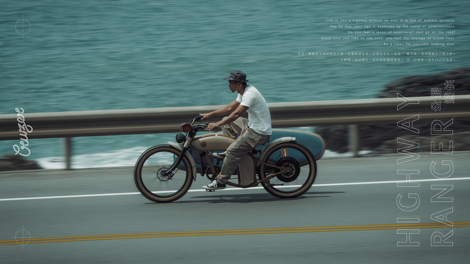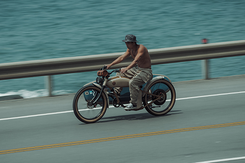 Cruzer是Rayvolt旗下首款原創車型,整體設計奠基於摩托車起源的1900年代,致敬二戰後風行摩托騎士界的Cafe Racer復古風格,並融入以寬胎、寬握把著稱的海灘自行車元素。